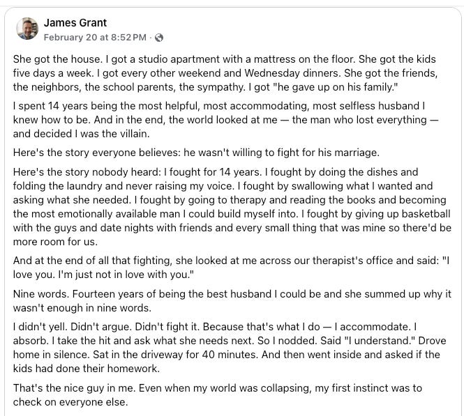 While there are always two sides of the story… it sounds like James here was trying his best to be a good father and husband.
